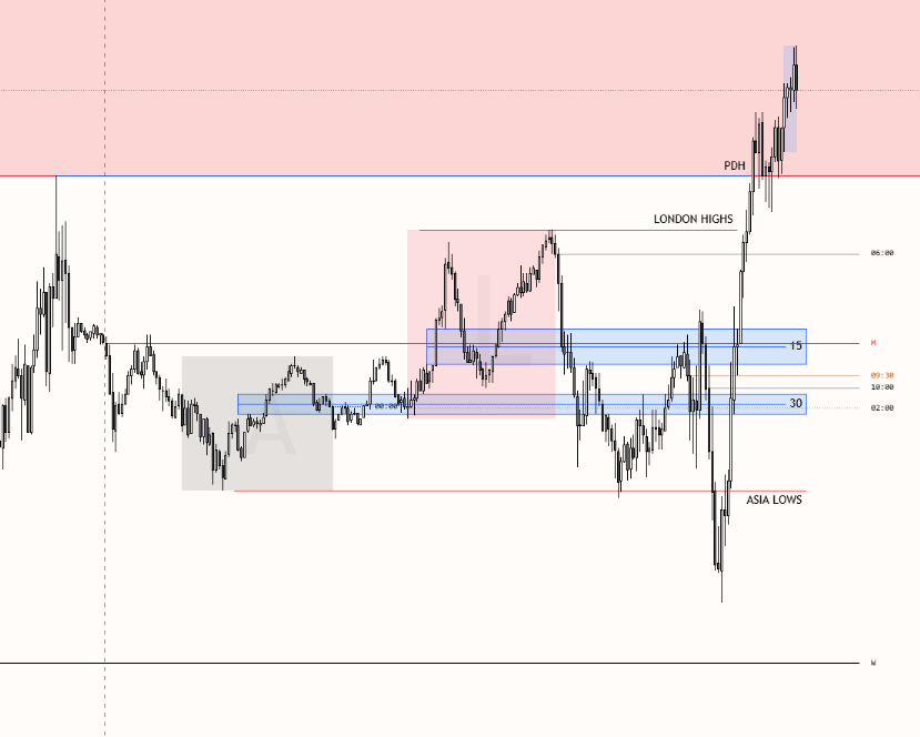 To be fair, ES didn’t give me too much room for profit / RR. I’d need to be in the 15s-30s timef frame. UNLESS… I took the entry at Daily/Monthly open. Partials at London LQ and PDH.